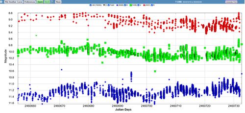 今朝の ATel #17052 によると近々の紫外線域の振幅の増大は、降着円盤の活動にともなう・・とか。 明日未明、我が家付近は晴れます。 80年ぶりに「2等星ふたつの かんむり座」が未明の空に輝いているでしょうか? そう願いたいですね・・ 3000年光年先からの…