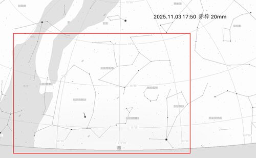 アストロアーツの投稿写真で未明の空で「北斗七星」と彗星を一緒に 40mm ほどのレンズで撮られた方がおりました。すい星は小さいけれど尾がのびている姿がわかります。 さて、これを更に画角を広げるなら・・以下は 35mm フルサイズセンサー 20mm で写したも…