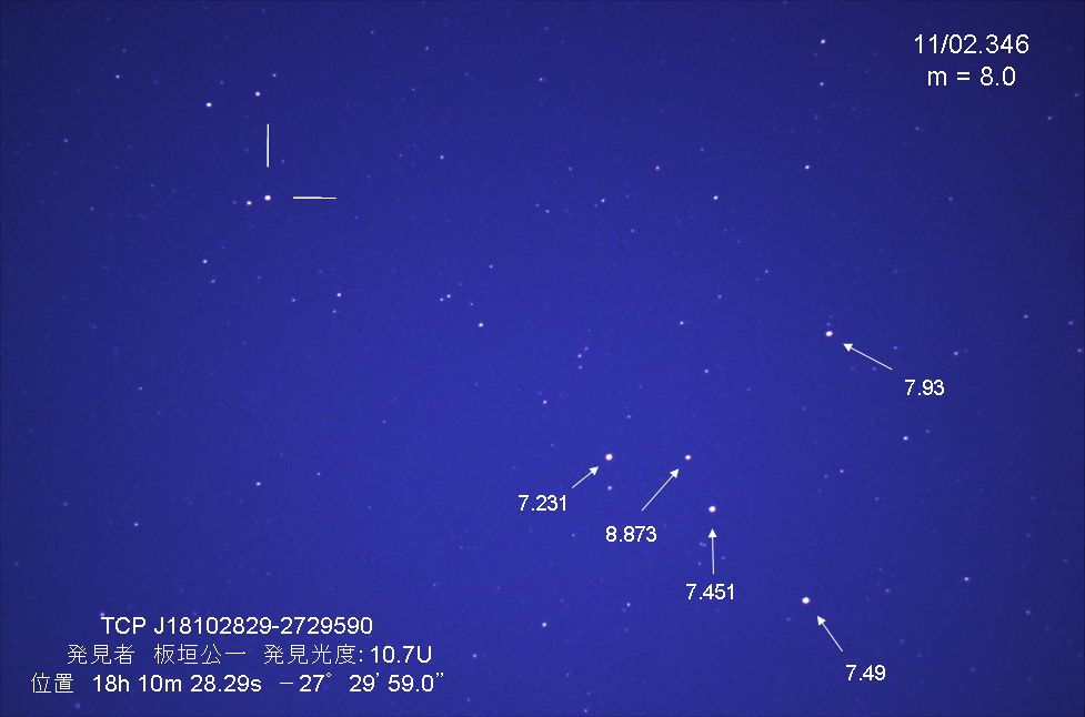 山形県の板垣さんが10月20日に発見された「いて座新星」11月02日17時17分直焦点撮影