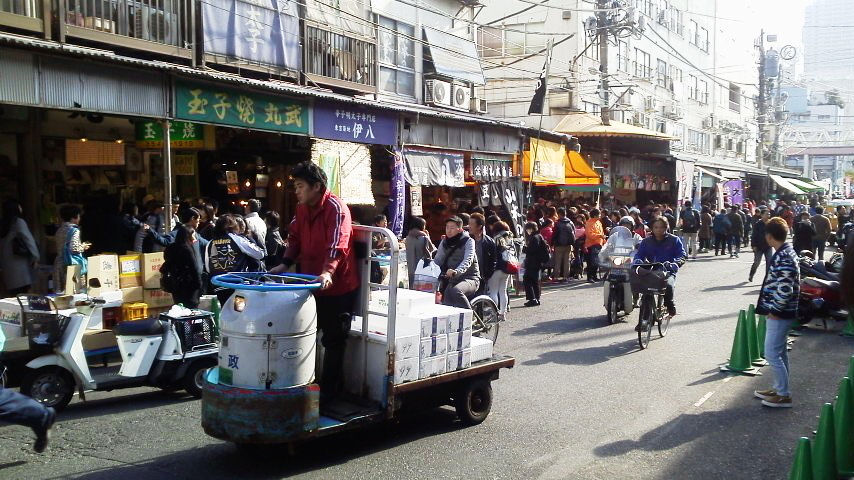 朝もはよから、にぎわう築地(有名な玉子焼店 丸武 前)