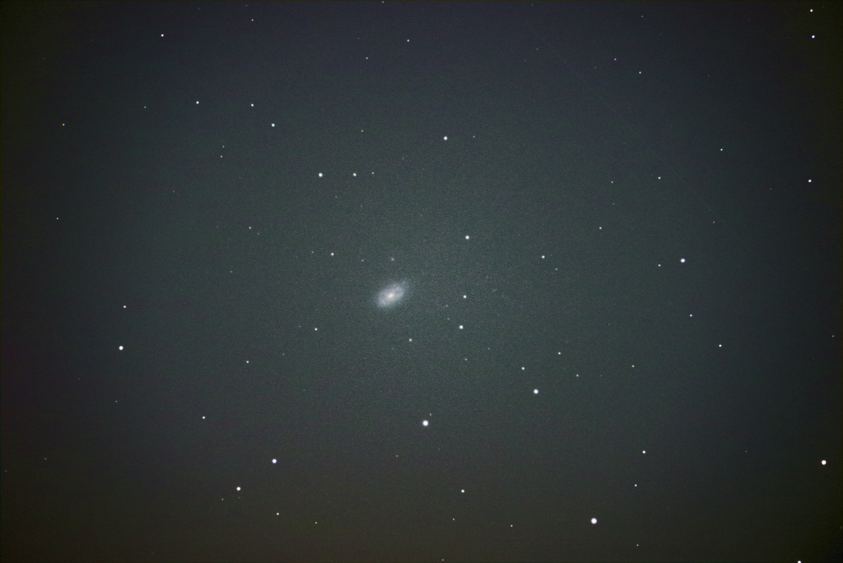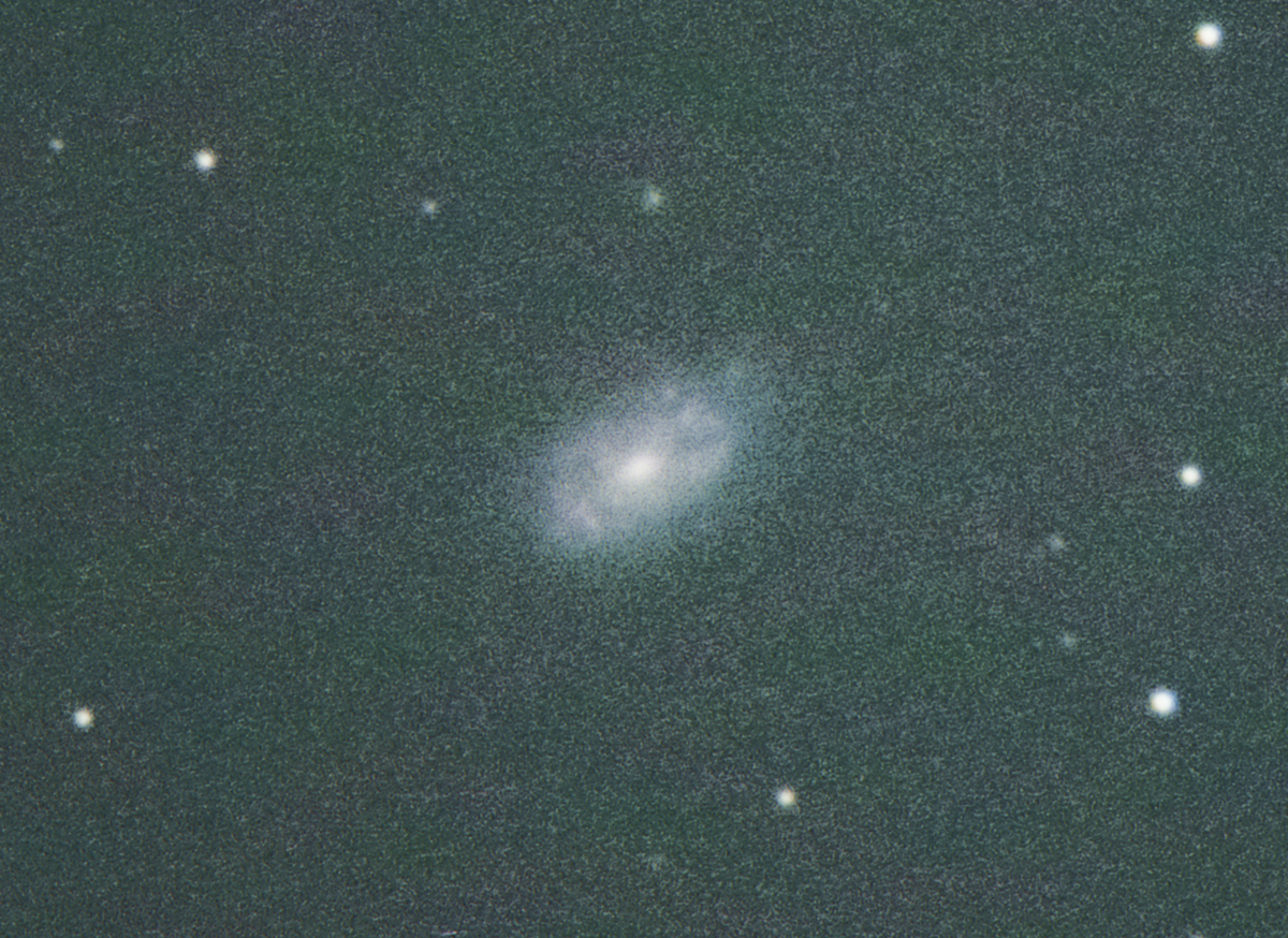 一見すると大きな楕円体が目立ち NGC 天体も、これひとつか・・と思われがちですが、上の領域には、NGC3500 という小さな銀河が写り込んでいます。ほぼ直上にある輪郭のぼけた小さな丸い天体がそれです。